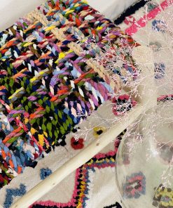 - Banc traditionnel marocain il est tressé avec des chutes de tissus recyclés, son cadre est en bois de citronnier