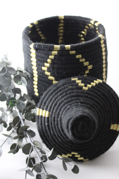 - Corbeille berbère « noire et doré » artisanat marocain