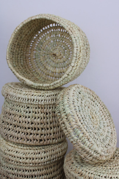 - Panier de rangement muni de son couvercle tressé avec les feuilles du palmier il est réalisé entièrement à la main dans l’atelier de l’artisan vannier Rahal