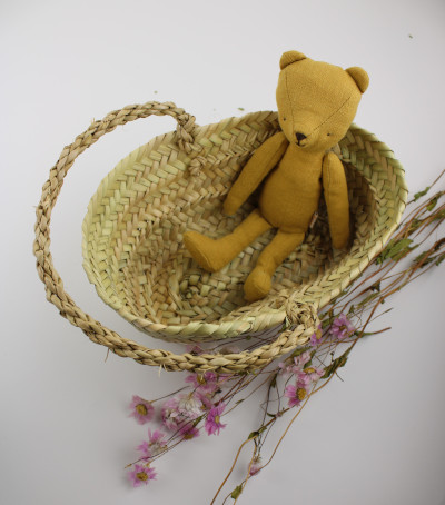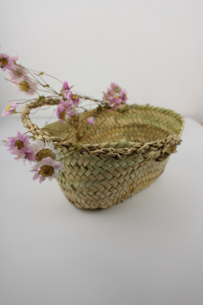Un joli petit panier avec anse, pratique pour y ranger vos petites affaires ou en élément de décoration dans une chambre d’enfant.