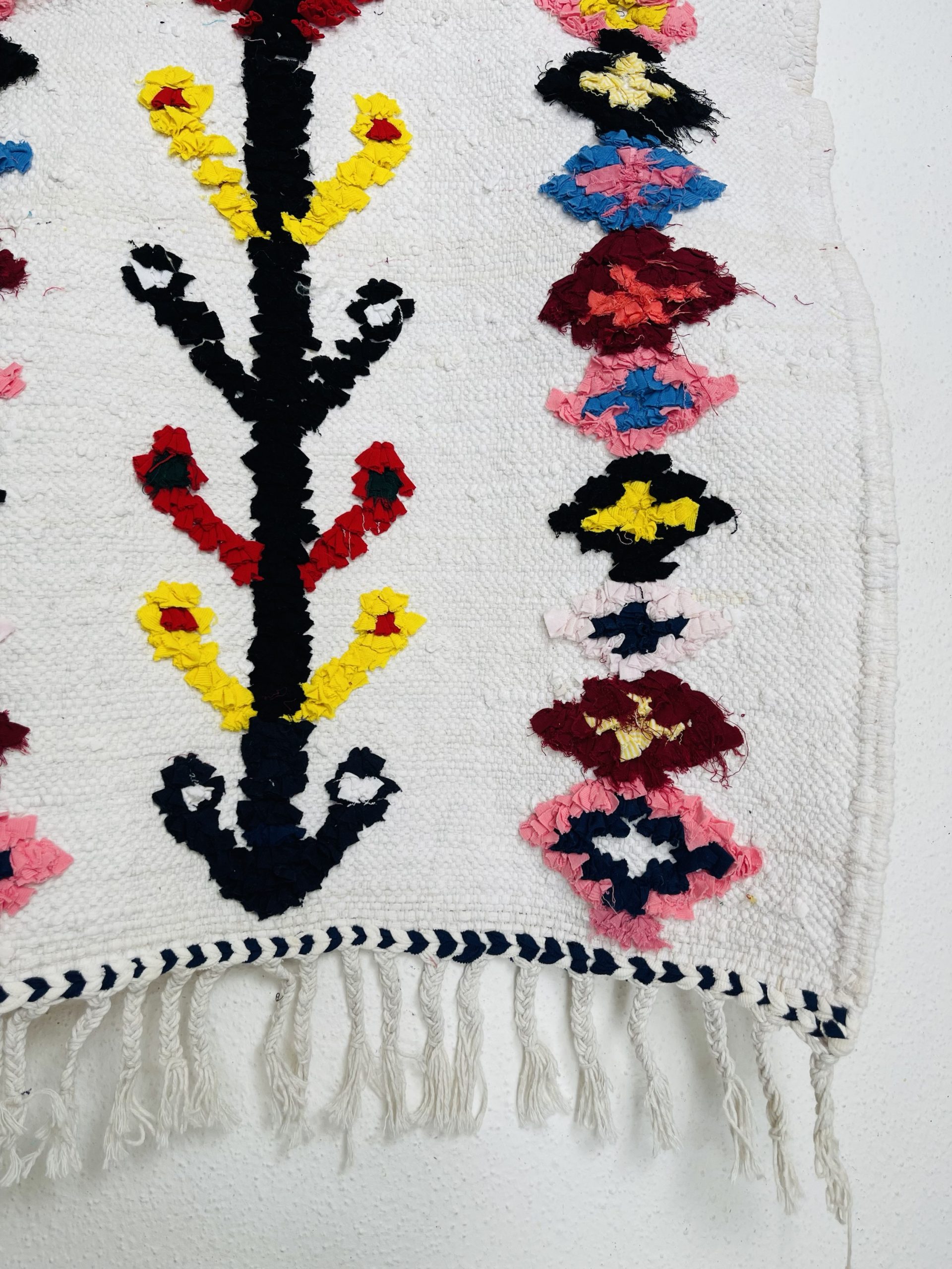 - Kilim tissé main avec sur une trame de coton, de laine ainsi que des chutes de tissus recyclés