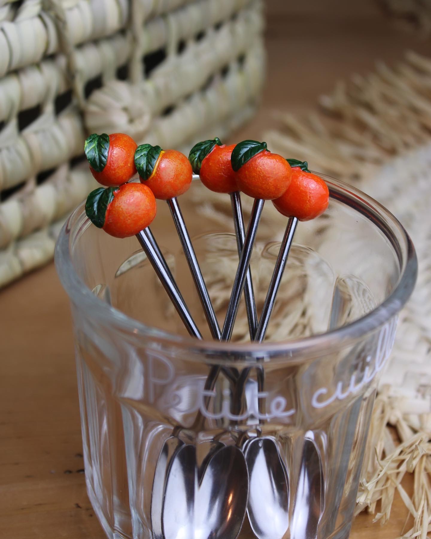 - Lot de 6 petites cuillères à café vintages en forme d’orange.