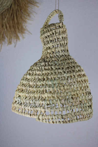 Suspension ajourée en feuille de palmier, observez son magnifique tressage. Une pièce unique et atypique.